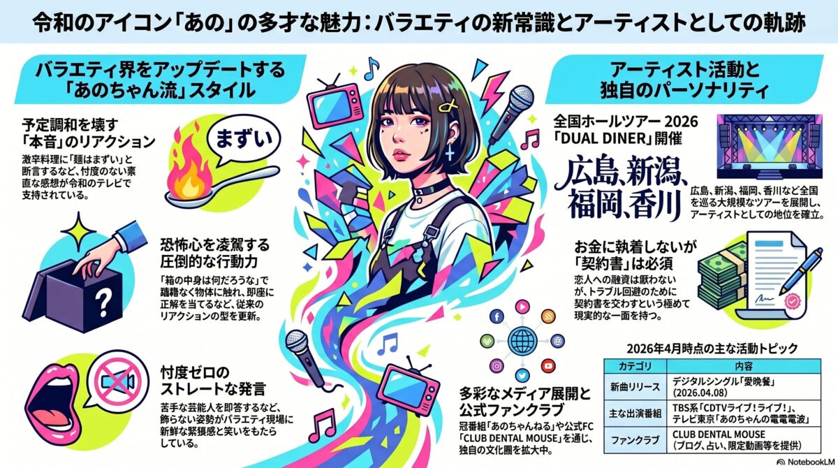 - 職業的エゴの露呈: あのちゃん自身が語る「1分間の歌唱依頼はアイデンティティのブレ(ブレ)に繋がるから断る」というポリシー。これがゲストに「プロとしての矜持(あるいは不満)」を語らせる呼び水となる。