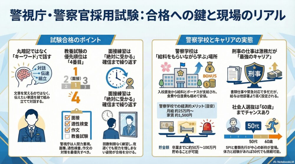 年齢や過去の固定観念を理由に、警察官への道を諦める必要はない。今、警察組織が求めているのは、社会の荒波を経験し、多様な視点を持つ「即戦力のあなた」である。この史上最大のチャンスを逃さず、自らのキャリアを治安維持の最前線で活かしていただきたい。